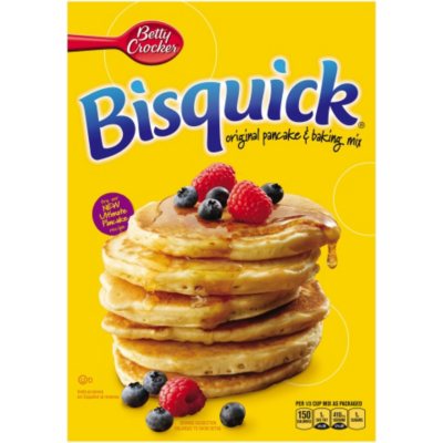 Single-Serve Bisquick Pancakes Recipe and Nutrition - Eat This Much Pour 1/4 cup of pancake mix in pan. Wait till bubbles rise to top, then flip and cook other side. Spray pan with cooking spray again, and repeat for the second pancake. Step 6 Top with your favorite pancake toppings. Percent calories from Carbs 58% Protein 13% Fat 30% Recipe totals Calories 268 Carbs 38g Fat 9g Protein 9g Fiber 3g Net carbs 35g Betty Crocker - Bisquick Original Pancakes Prepared calories, carbs ... Betty Crocker - Bisquick Original Pancakes Prepared calories, carbs & nutrition facts | MyFitnessPal Betty Crocker Betty Crocker - Bisquick Original Pancakes Prepared Serving Size : 0.25 cup batter 90 Cal 55% 12g Carbs 31% 3g Fat 14% 3g Protein Track macros, calories, and more with MyFitnessPal. Join for free! Daily Goals