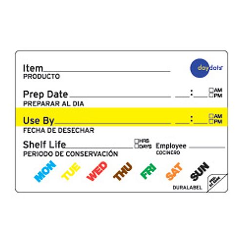 Daydots Food Safety Labels and Foodservice Supplies - Ecolab Daydots™ Label Dispensers (20) Daydots™ Label Applicator Guns & Labels (50) Daydots™ Food Rotation Labels (554) Food Rotation Posters (3) Daydots™ Food Portioning (60) Daydots™ Shelf Tags & Labels (11) Daydots™ Specialty Labels (71) Daydots™ Tamper-Evident Labels (7) Prep-n-Print (16) Prep-n-Print with Flex (17) Prep-n-Print ...