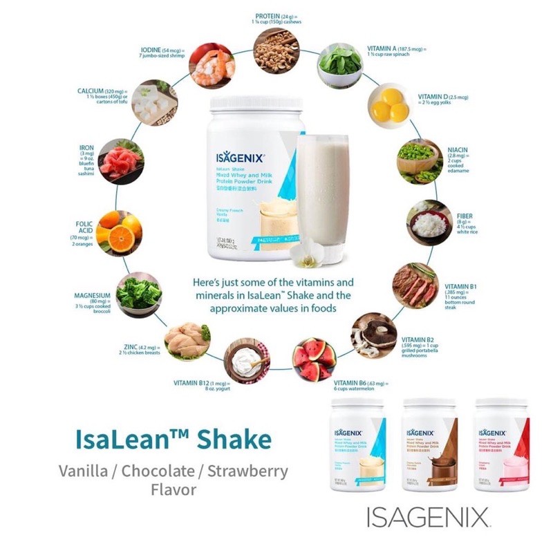IsaLean® Shake - Isagenix Product Hub 24 grams of high-quality protein. Made from whey and milk from grass-fed cows ; Branched-chain amino acids. Help sustain energy, build muscle, and burn fat ... Whole Blend IsaLean Shake - Isagenix Product Hub 24 grams of high-quality protein including undenatured whey from grass-fed cows. · 21 vitamins and minerals sourced from a premium blend of organic whole food ...